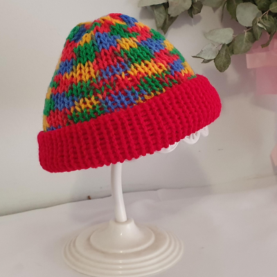 100% Acrylic Baby Beanies – Red Print Brimless